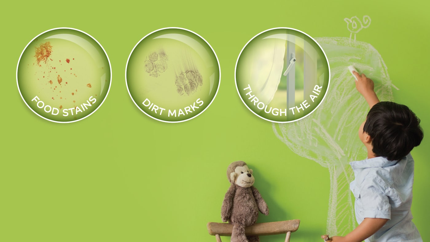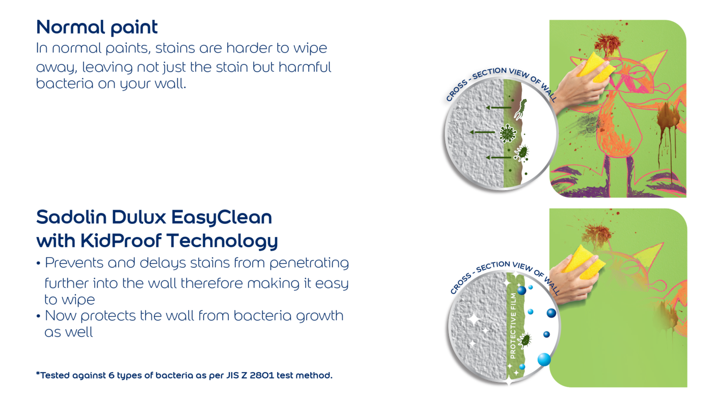 Parents are constantly trying their best to provide a clean and safe environment for kids to learn and play in. One of the key challenges most of them face is keeping the walls at home free from stains. However, many fail to realize that, it is not just the stains but the harmful bacteria that found its way to the wall as well