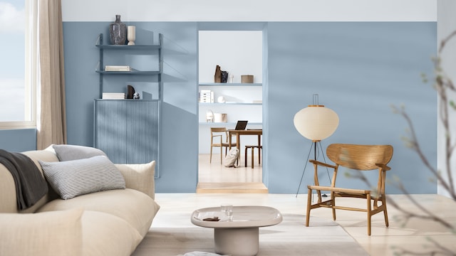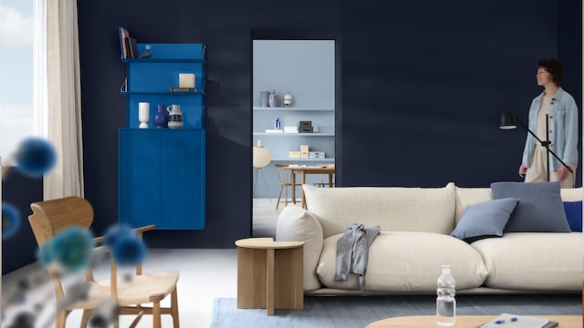 Embrace the Versatile Family of Indigos: a vibrant Free Groove™; an airy light blue – Mellow Flow™; and the meditative dark blue – Slow Swing™. These soulful indigo blues creating a Blue colour family that's both calming and space-changing. Whether you're planning a Living room makeover, Home transformation or seeking Playful decorating ideas, there's a blue tone for every room and mood. Let's explore how these Fluid colour schemes can revolutionize your interior design.